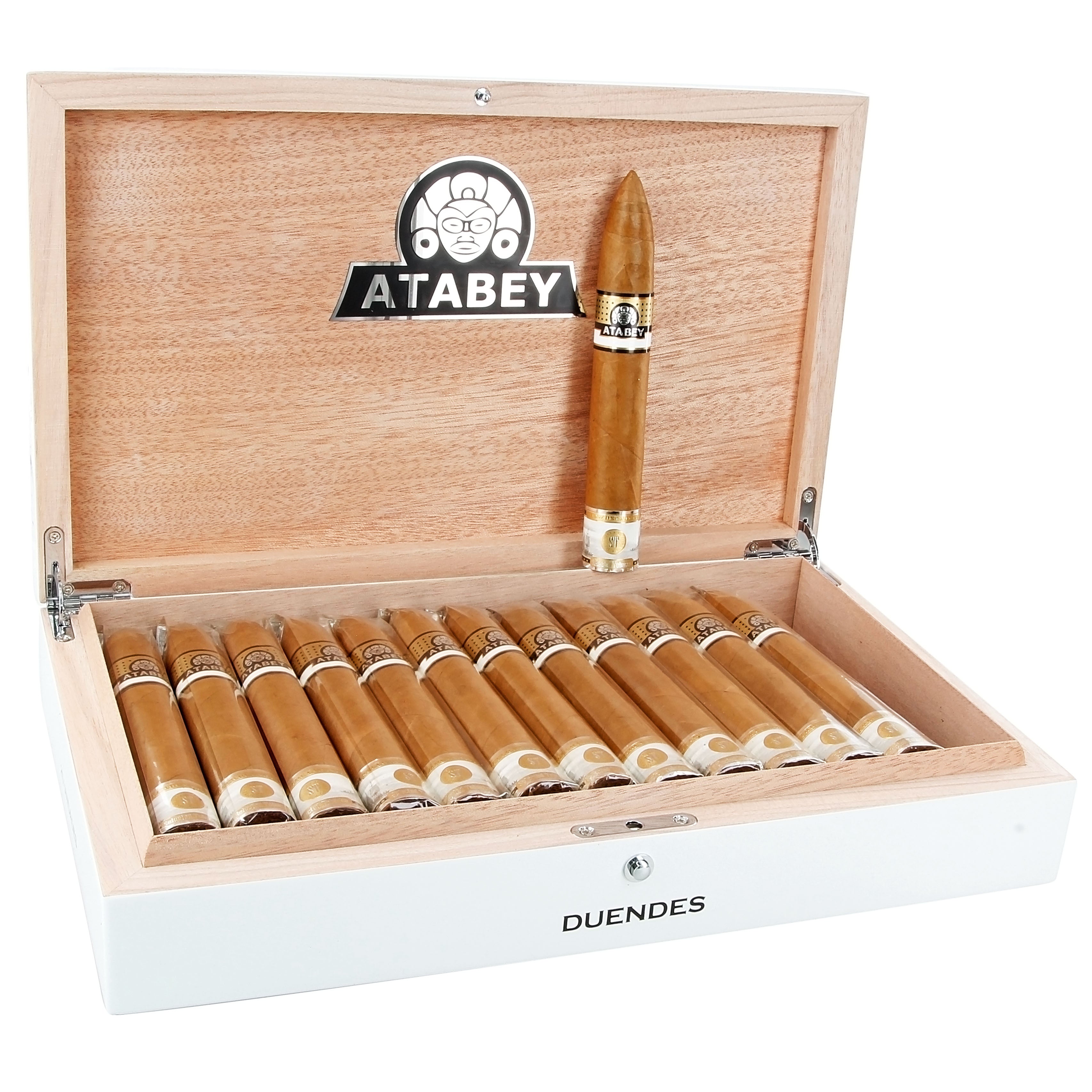 A pleasant floral base accompanied by peppery, salty, sweetness and herbal notes give this mild to medium strength cigar its unique complexity. Handmade in Costa Rica, the blend was not disclosed. However, it was created by Nelson Alfonso a Cuban artist who is well-known in the cigar world for doing the artwork and packaging for the Cohiba Behike brand. The Atabey Duendes is a limited-release luxury cigar that deserves a special place in your humidor.