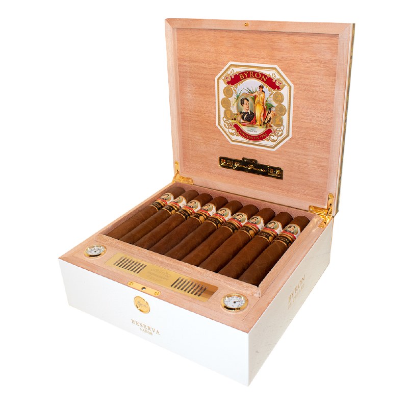 Originally a Cuban brand from the mid 19th century, the Lord Byron cigars were created by two cousins who owned a humble cigar factory near Havana. The original Lord Byron cigars were a hit, and the brand enjoyed success for generations, eventually the grandson of one of the cousins, Ricardo Alfonzo, experienced severe financial hardships with the brand and was forced to sell. Roughly ninety years later, Ricardo Alfonzo’s great-grandson, Nelson Alfonso, resurrected the brand through his Selected Tobacco Company. The Byron 19th Century cigar features a chocolate brown Ecuadorian Habano wrapper, an undisclosed binder and filler tobacco from Nicaraguan and an undisclosed location. A little pepper, spice and cedar notes with an intense bread flavor on the palate, the Byron 19th Century cigar is a chewy, complex smoke exuding notes of cocoa and cream to balance out the pepper and spice.