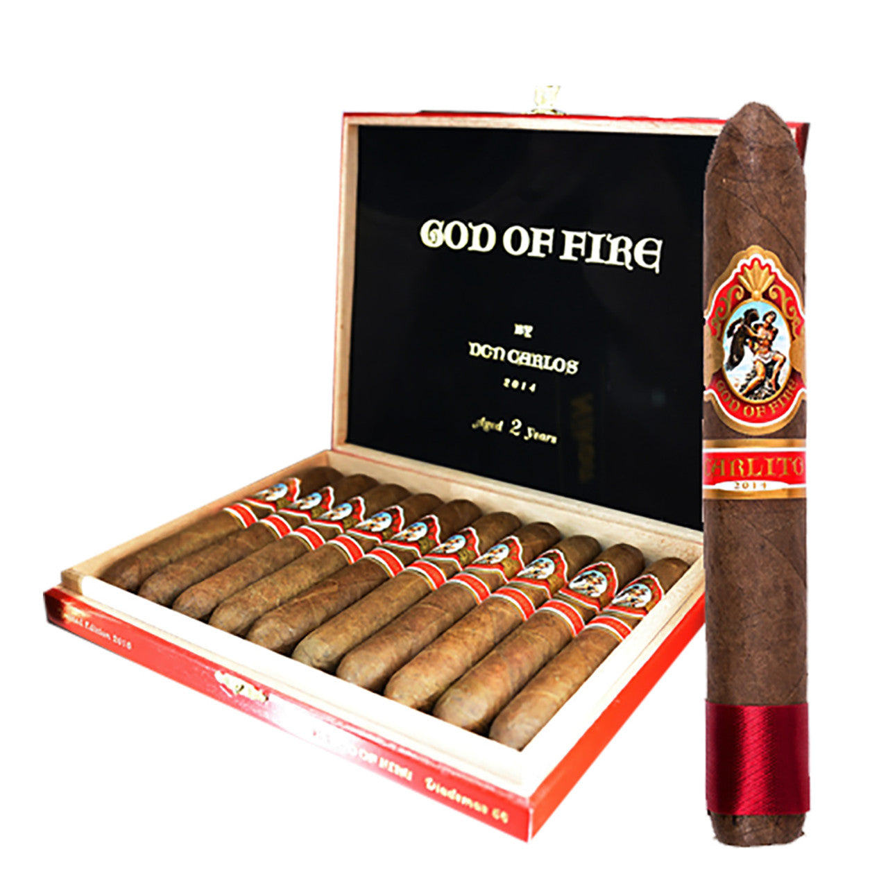 God of Fire by Carlito Indisputably the boldest of all the God of Fire cigars, God of Fire by Carlito has a potent, peppery tang that will tantalize sophisticated palates. Despite the medium-to-heavy balance, God of Fire by Carlito is a complex cigar with a rich mix of subtle flavors and a slight sweetness to balance the peppery notes. Wrapper: Cameroon. Filler and Binder: Dominican.